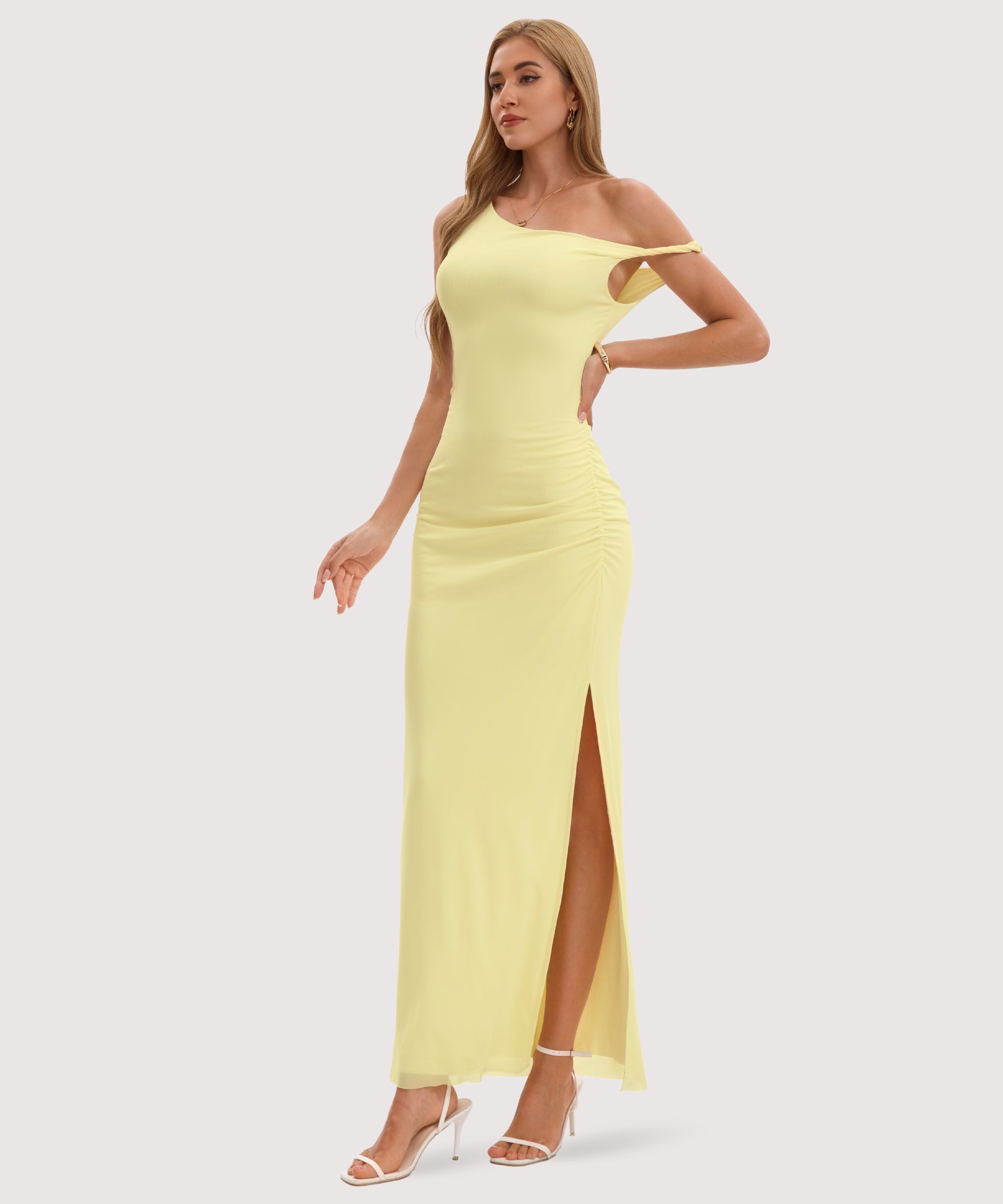 Twist Strap Side Slit Maxi Dress-Yellow